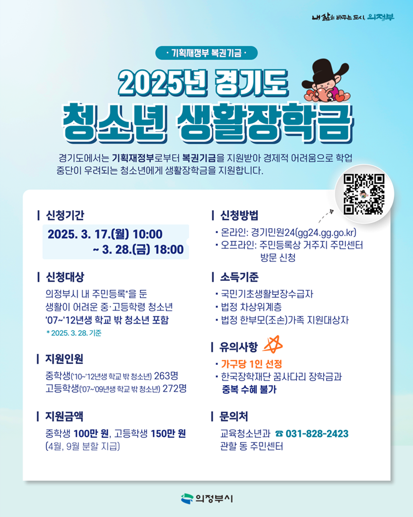 📢 2025년 경기도 청소년 생활장학금으로 안정적인 학업 환경을 만들어가세요! 🎓💙