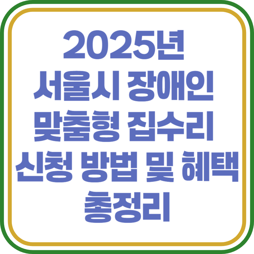 서울시 장애인 맞춤형 집수리 지원! 2025년 신청 방법 및 혜택 총정리