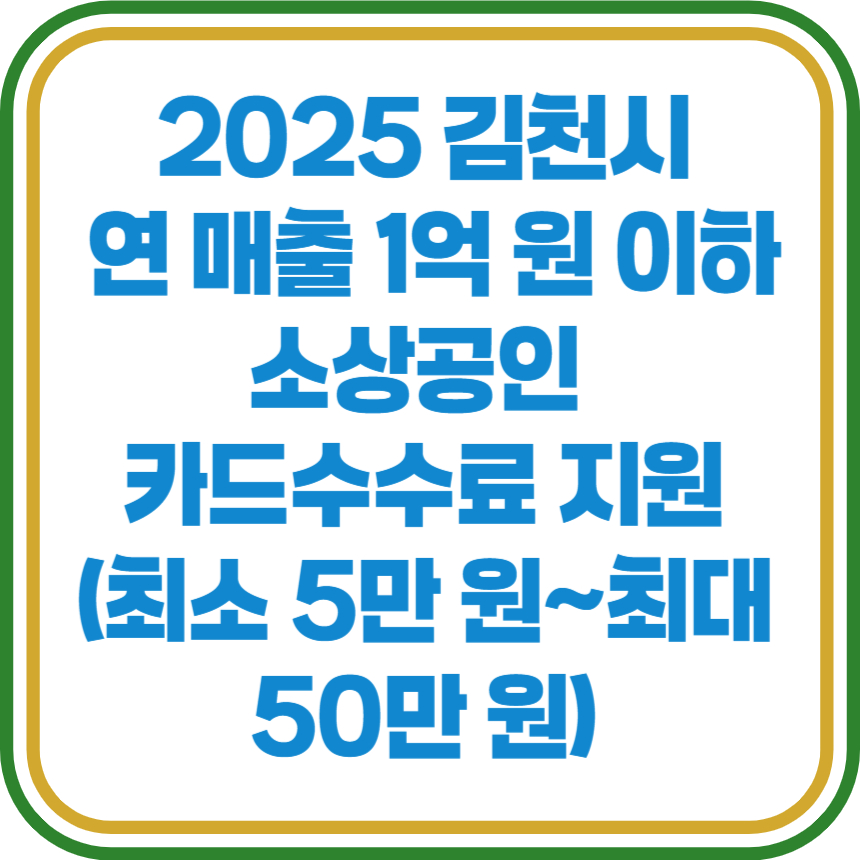 김천시는 경기침체로 어려움을 겪고 있는 소상공인을 돕기 위해 2025년 소상공인 카드수수료 지원사업을 시행합니다.이번 사업을 통해 연 매출 1억 원 이하 소상공인은 카드 매출액의 0.5%를 환급받을 수 있으며, 최소 5만 원에서 최대 50만 원까지 지원금이 지급됩니다.
