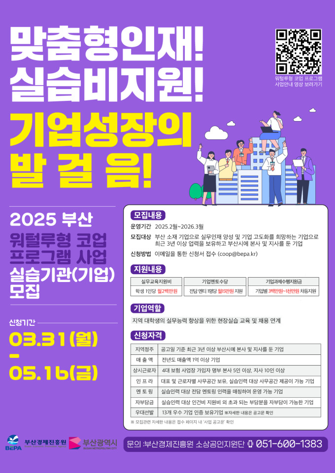 부산시와 (재)부산경제진흥원이 대학생들의 실무 경험 확대와 지역 기업 인재 매칭을 위한 ‘2025 워털루형 코업(Co-Op) 프로그램’을 개편하고 본격 시행에 나섰습니다. 캐나다 워털루대학교의 성공 모델을 바탕으로 만들어진 이 프로그램은 청년 구직자에게는 실무 역량 강화를, 기업에게는 우수 인재 확보의 기회를 제공하는 산학협력 실습 프로그램입니다.
