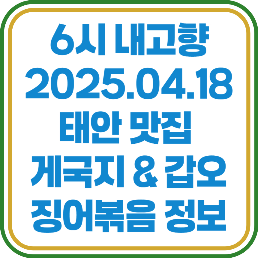 2025년 4월 18일 방영된 KBS 6시 내고향에서는 충남 태안의 안면도 맛집, 바다산성이 소개되어 화제를 모으고 있습니다. 방송에서는 이 집의 대표 메뉴인 ‘게국지’와 ‘갑오징어볶음’이 등장하며 시청자들의 입맛을 사로잡았는데요. 바닷가의 정취와 어우러진 깊은 맛의 향연, 지금부터 자세히 소개해드릴게요.